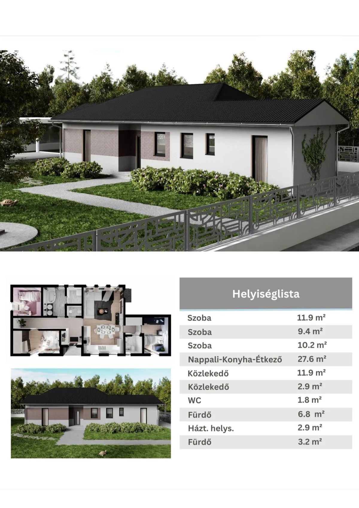 Ideális 3-5 fő számáraBruttó 112 m2Nettó 93 m2Ajánlott telekterület: minimum 500 m2Kész állapotban: 21.670.880 Ftt-tól