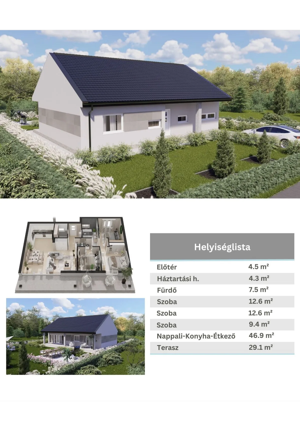 Ideális 2-6 fő számára (1-2 generáció)Bruttó 113 m2Nettó 98 m2Ajánlott telekterület: minimum 500 m2Kész állapotban: 21.864.370 Ft-tól