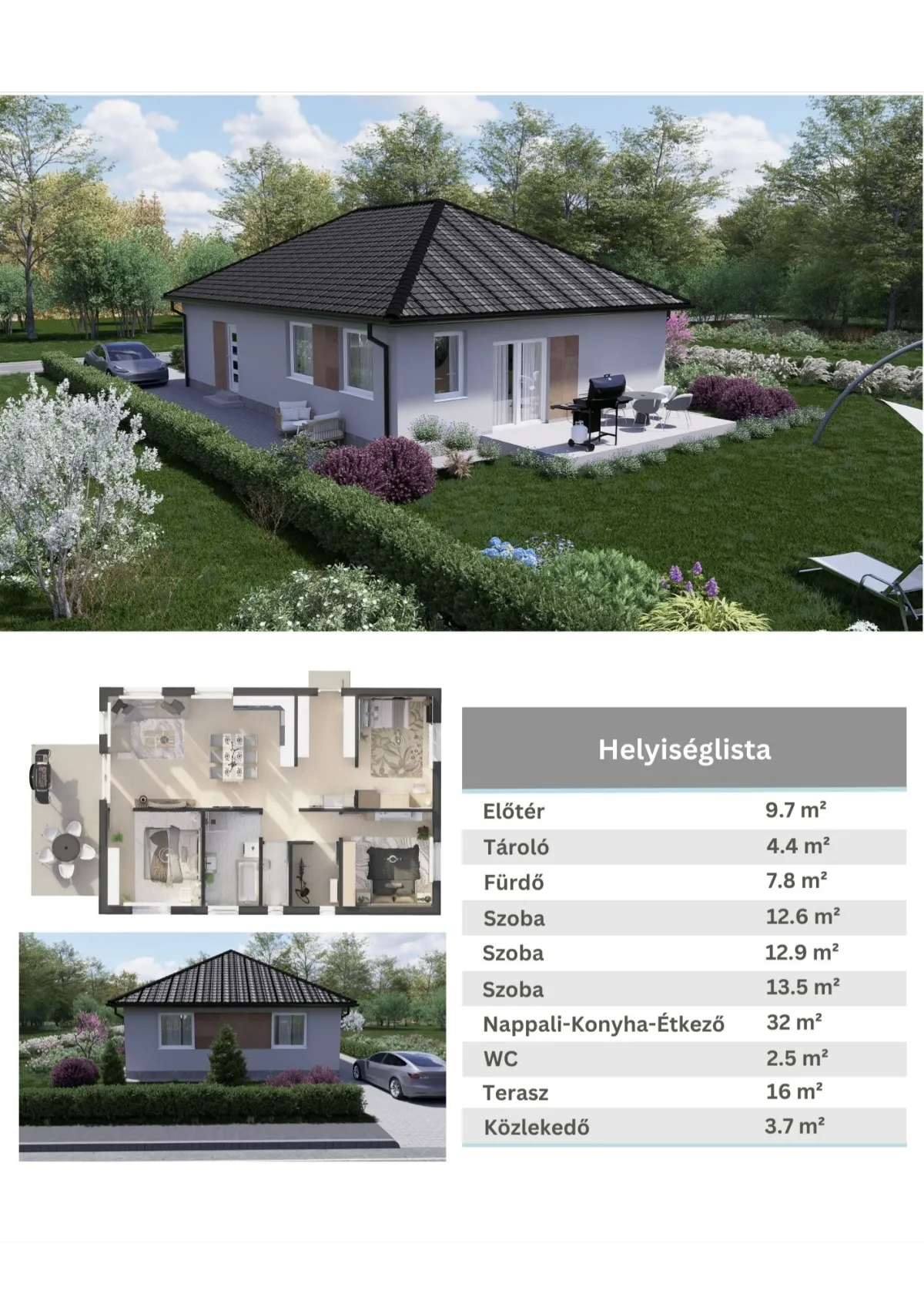 Ideális 2-6 fő számára (1-2 generáció)Bruttó 118 m2Nettó 99 m2Ajánlott telekterület: minimum 500 m2Kész állapotban: 22.831.820 Ft-tól