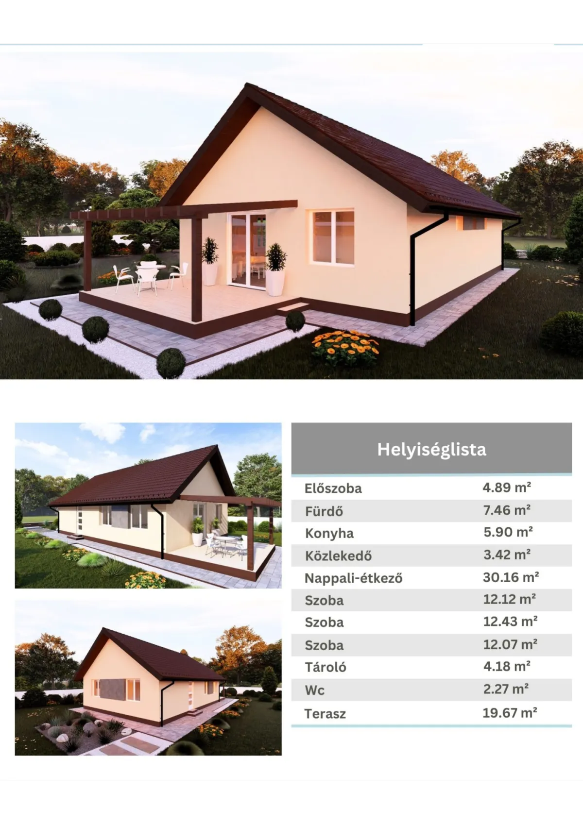 Ideális 2-5 fő számáraBruttó 112 m2Nettó 95 m2Ajánlott telekterület: minimum 400 m2Kész állapotban: 21.670.880 Ft-tól