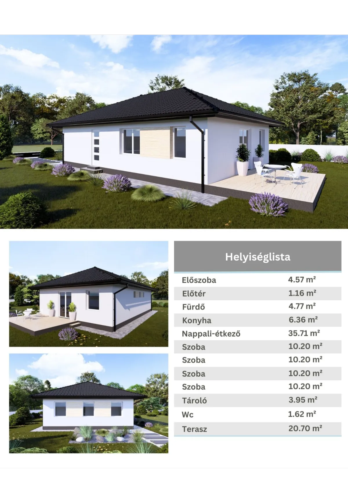 Ideális 2-5 fő számáraBruttó 117 m2Nettó 99 m2Ajánlott telekterület: minimum 400 m2Kész állapotban: 22.638.330 Ft Ft-tól