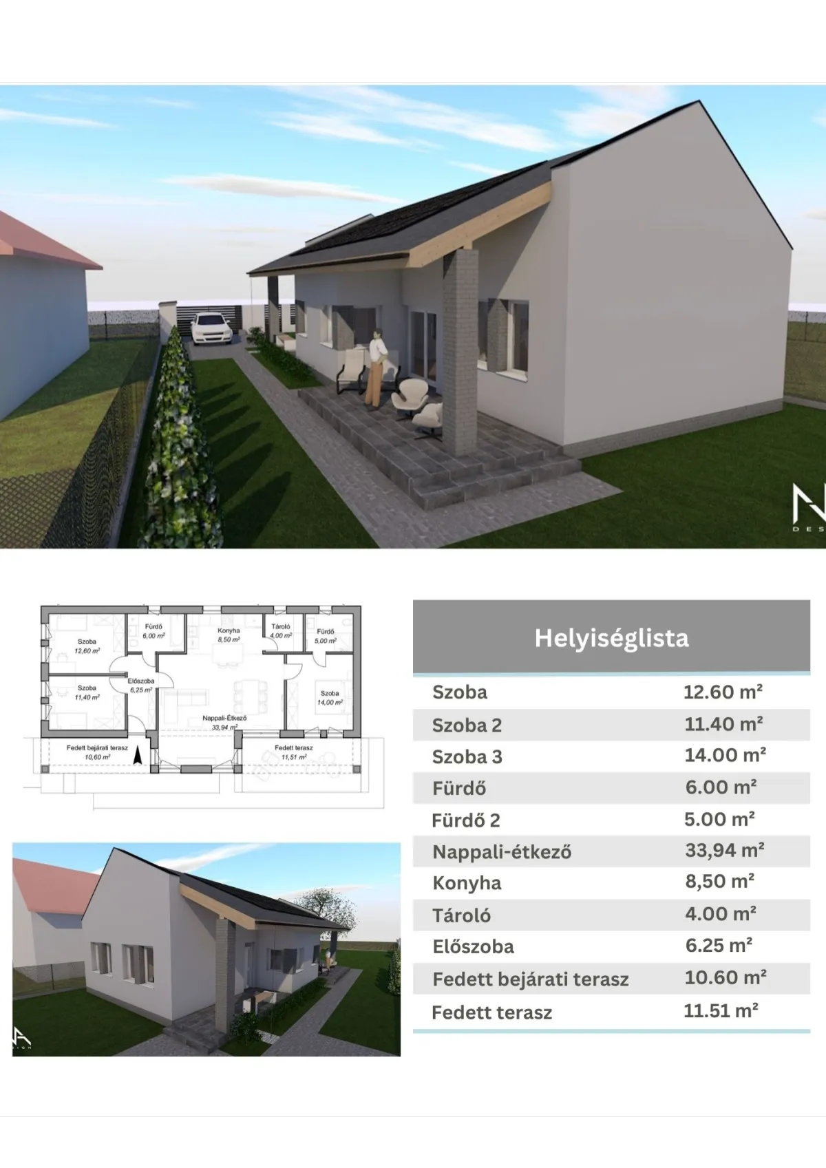 Ideális 3-5 fő számáraBruttó 126 m2Nettó 107 m2Ajánlott telekterület: minimum 600 m2Kész állapotban: 24.379.740 Ftt-tól