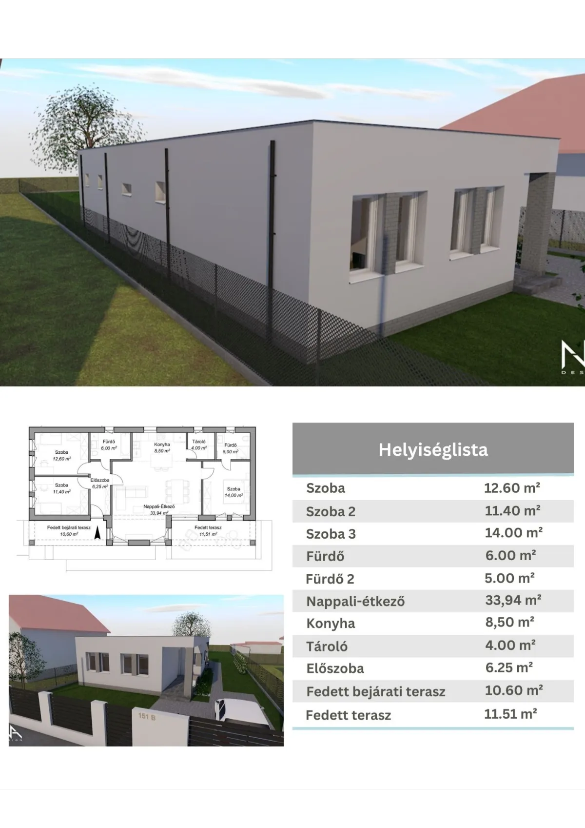 Ideális 3-5 fő számáraBruttó 126 m2Nettó 107 m2Ajánlott telekterület: minimum 600 m2Kész állapotban: 24.379.740 Ft-tól