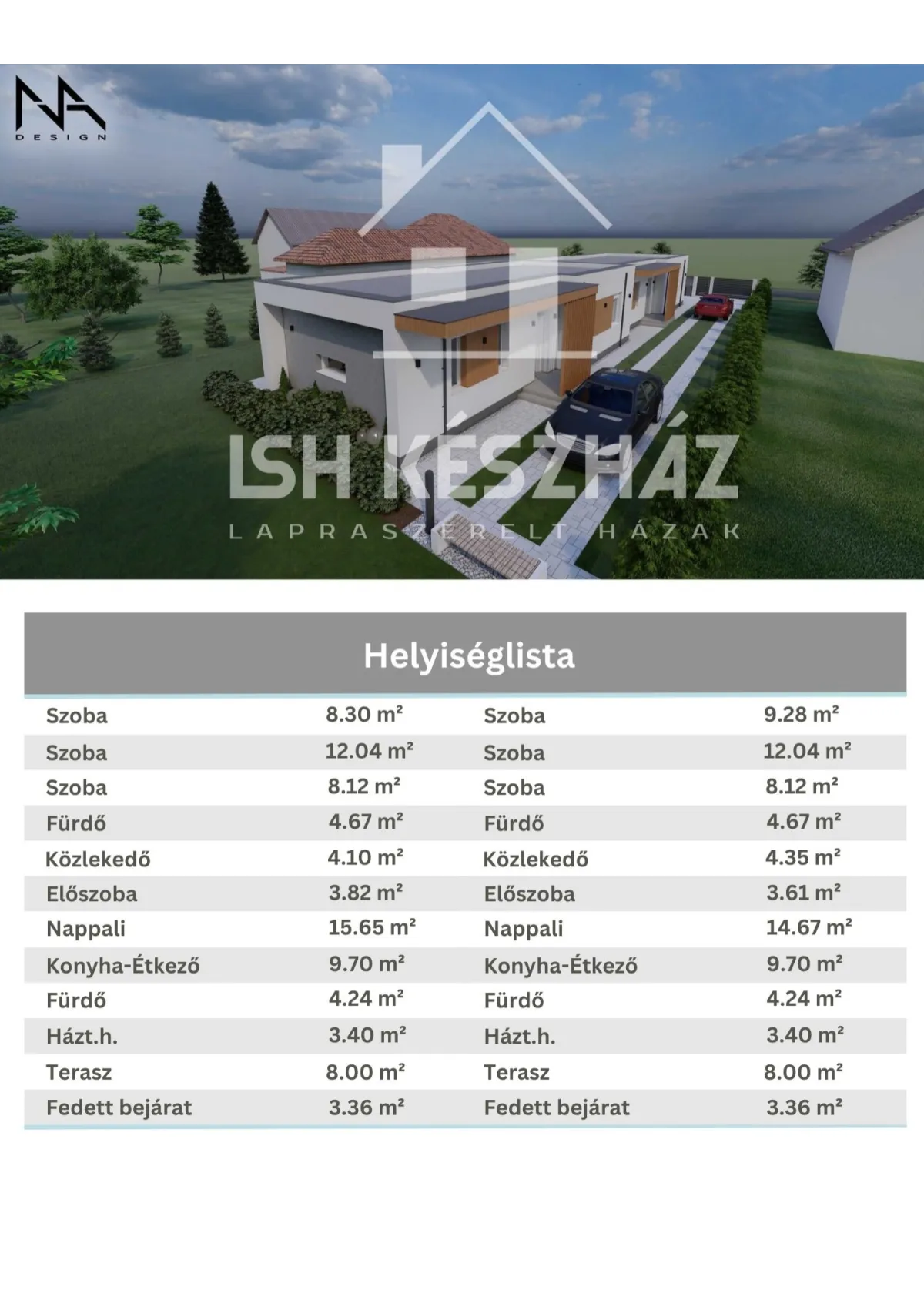 Ideális 4-8 fő számáraBruttó 186 m2Nettó 148,12 m2Ajánlott telekterület: minimum 600 m2Kész állapotban: 34.189.683 Ft-tól