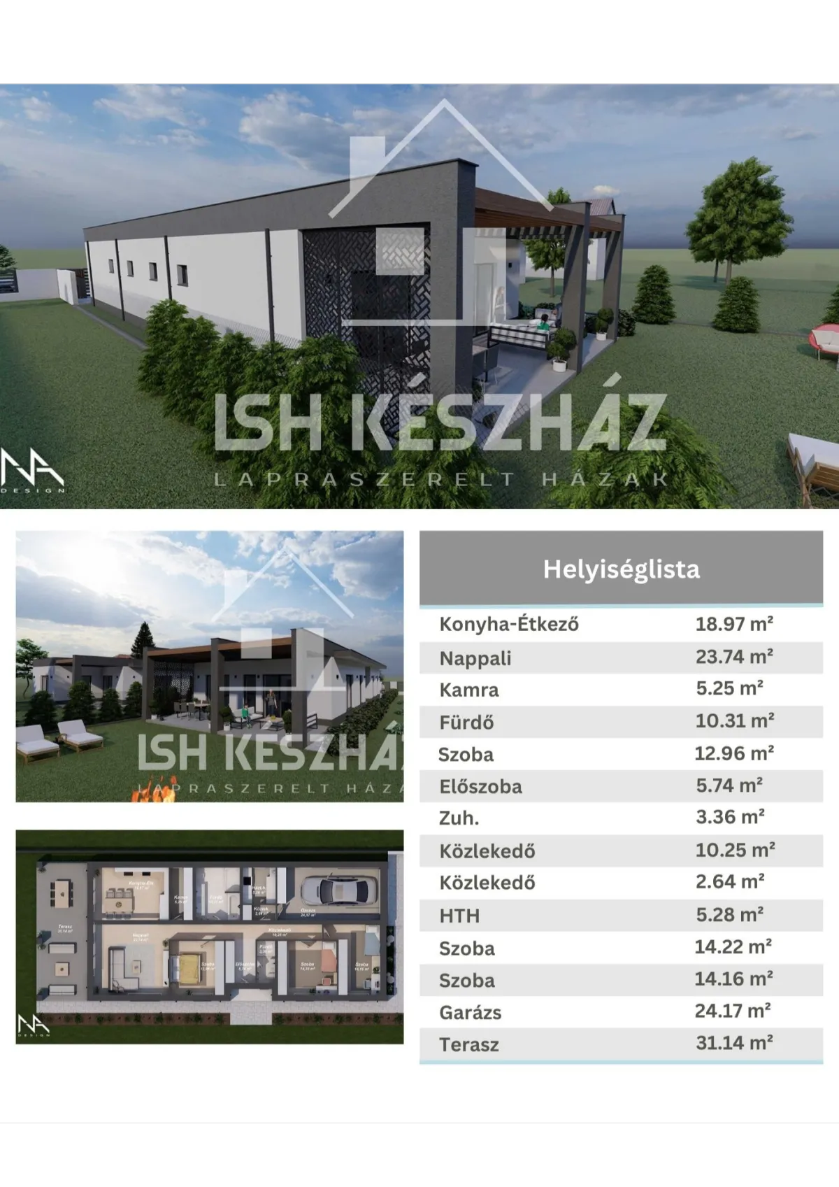 Ideális 4-6 fő számáraBruttó 187 m2Nettó 182,19 m2Ajánlott telekterület: minimum 600 m2Kész állapotban: 34.373.499 Ftt-tól