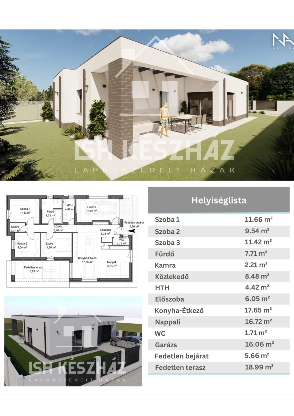 Ideális 6-8 fő számáraBruttó 144 m2Nettó 123 m2Ajánlott telekterület: minimum 600 m2Kész állapotban: 26.469.432 Fttól