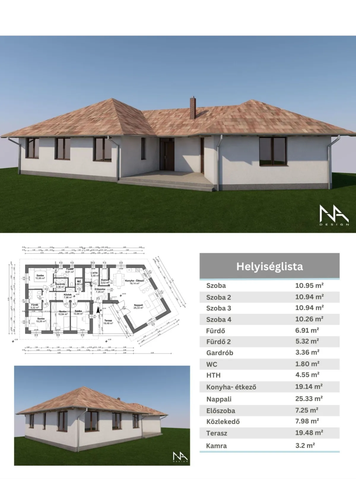 Ideális 4-6 fő számáraBruttó 138 m2Nettó 117 m2Ajánlott telekterület: minimum 600 m2Kész állapotban: 25.366.539 Ftt-tól