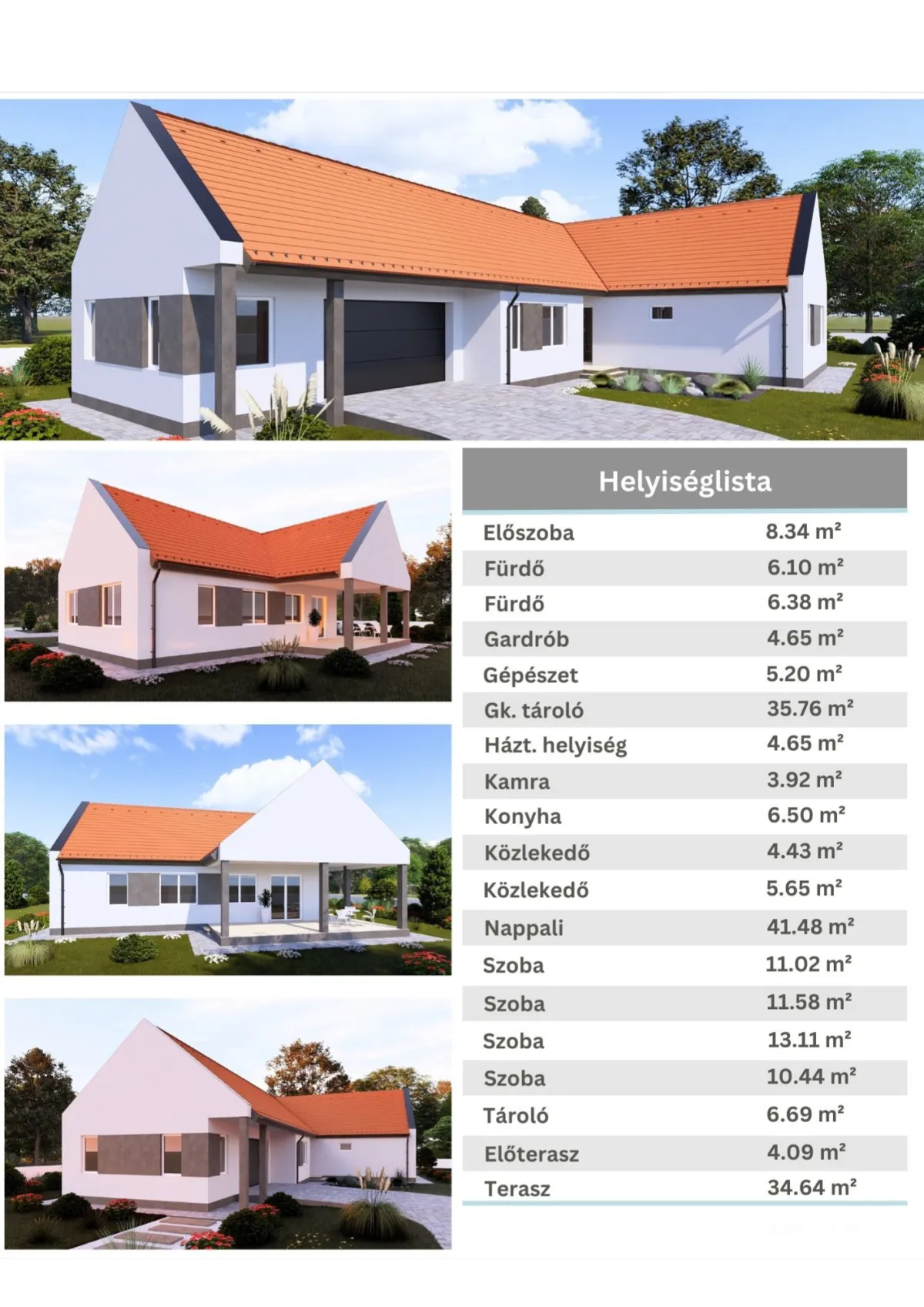 Ideális 2-6 fő számáraBruttó 220 m2Nettó 186 m2Ajánlott telekterület: minimum 800 m2Kész állapotban: 40.439.410 Ft-tól